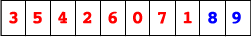 The numbers in RED are unsorted; the numbers in BLUE are sorted.