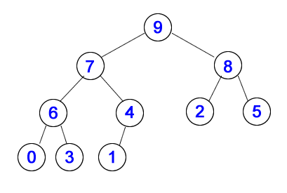 A maxheap means that the datum at every node is larger than the data of its children. Building a maxheap works right-to-left, bottom-to-top, in this order: