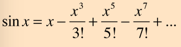 Write the function sine that takes one input, x (as shown in the formula), in terms of accumulate. It should approximate the sine of the angle (in radians) to 200 terms.